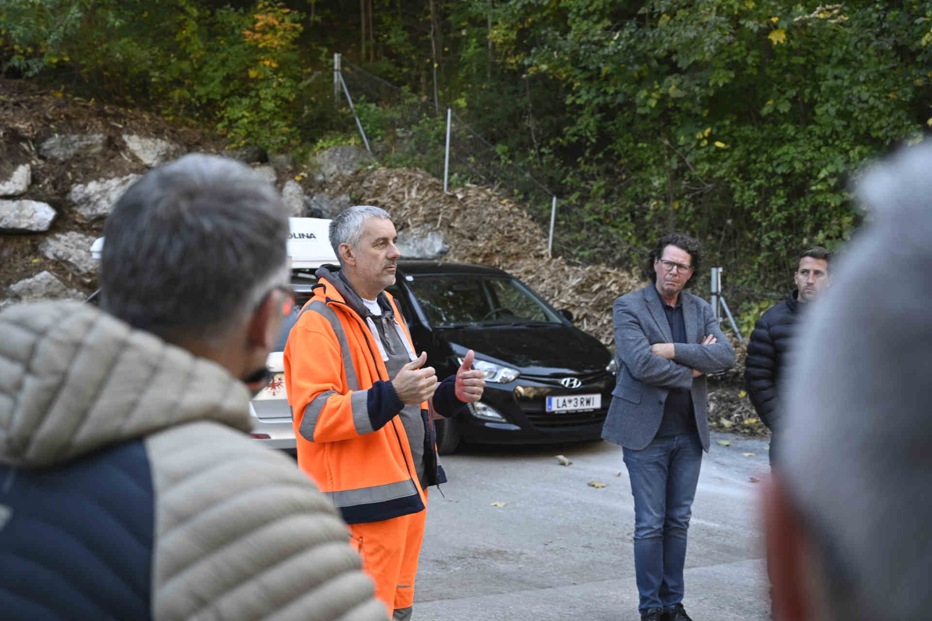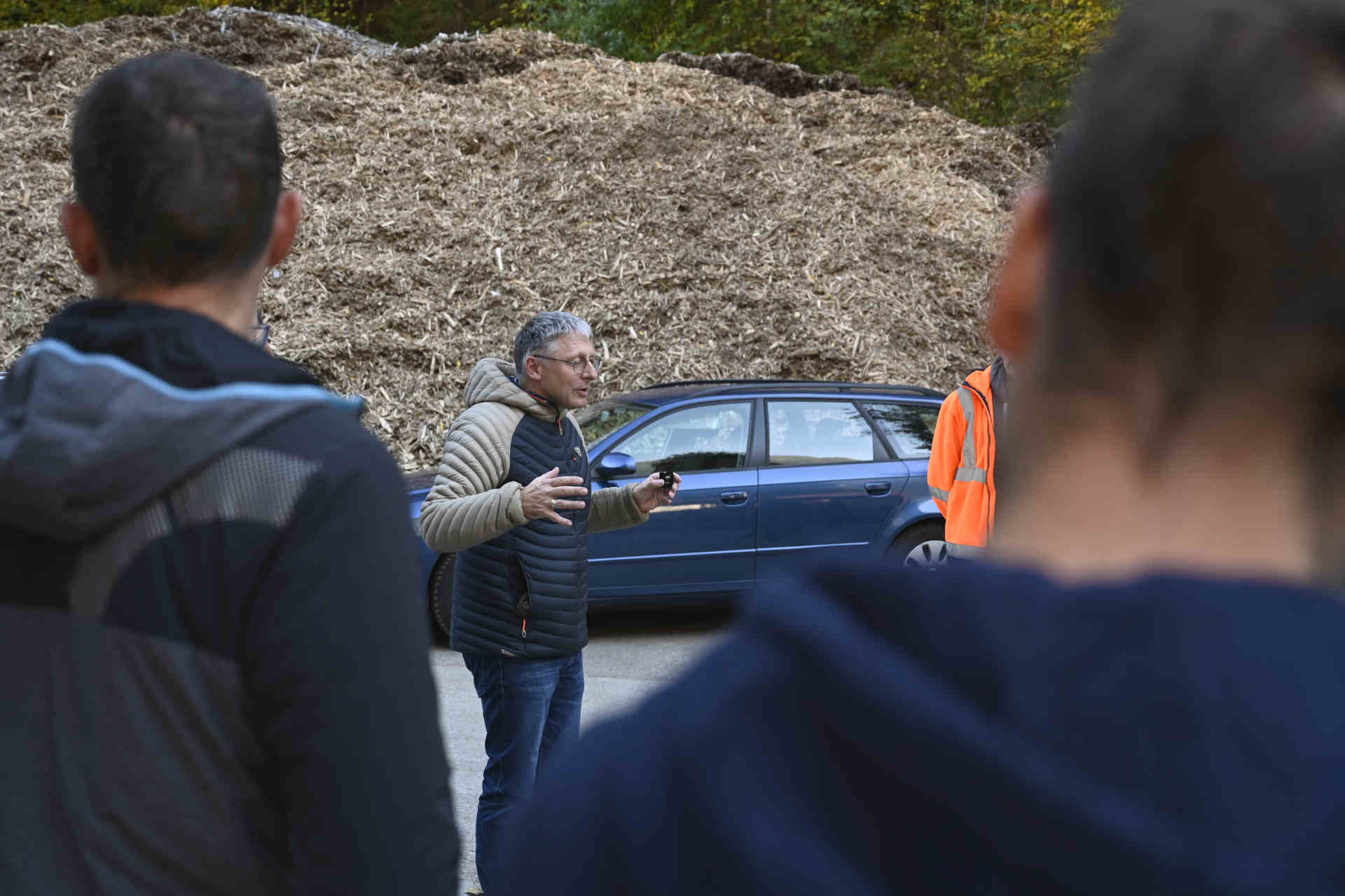 Nach der Sitzung ging es in Zams vom theoretischen Austausch in die Praxis: Sieghart Scherl, Betriebsleiter des Abfallwirtschaftszentrums Prantauer, gab Einblicke in die Herstellung des Ersatzbrennstoffprodukts, das an die Ortswärme Zams geliefert wird. „Wir liefern ein Ersatzbrennstoffprodukt aus Altholz, das bei uns sortiert, geschreddert und geprüft wird. So wird aus Abfall ein Produkt, das hier direkt vor Ort verbrannt wird“, erklärte Scherl, der seit 36 Jahren im Unternehmen tätig ist. Besonders betonte er den regionalen Kreislauf: „Wir liefern rund 13.000 Kubikmeter Altholz, das Heizwerk braucht etwa 20.000 Kubikmeter Brennmaterial. Der Rest kommt aus den Wäldern des Bezirks Landeck.“ Hundert Prozent regional also, ohne weite Transporte.