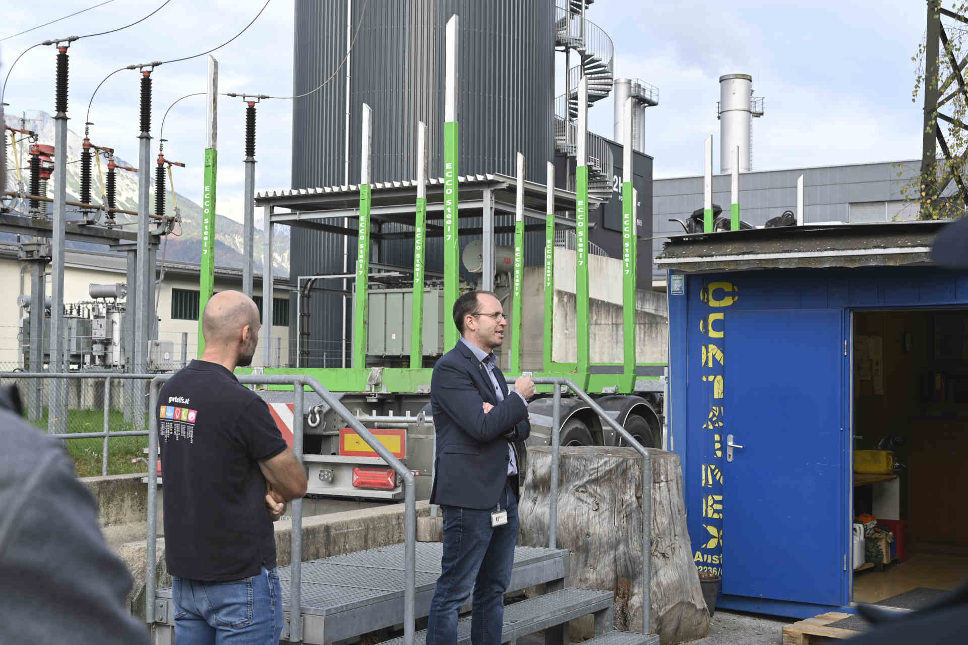 Nach dem Austausch in Mils ging es für die Teilnehmenden weiter zur Exkursion ins Biomasseheizkraftwerk der Hall AG. Dort verfolgten sie den Weg des Holzes – vom Eintreffen des Brennstoffs mit dem LKW über das präzise Abwiegen und die automatische Weiterförderung der Hackschnitzel per Kettentechnik bis zur Verbrennung im Kessel. Pius Sommeregger, Bereichsleiter für Netz und Erzeugung, führte mit Simon Hoppichler und Michael Pedevilla durch die Anlage und erinnerte daran, dass der Baubeginn im Jahr 2004 von großen Unsicherheiten begleitet war. Damals habe man sich gefragt, ob das Netz die geplante Leistung überhaupt tragen könne. „Heute geht es nicht mehr darum, ob wir einen Biomasse-Kessel betreiben können“, erklärte Sommeregger. „Vielmehr wäre es schön, wenn wir zwei zusätzliche Kessel hätten, um noch mehr erneuerbare Energieträger in unseren Energiemix einzubringen.“