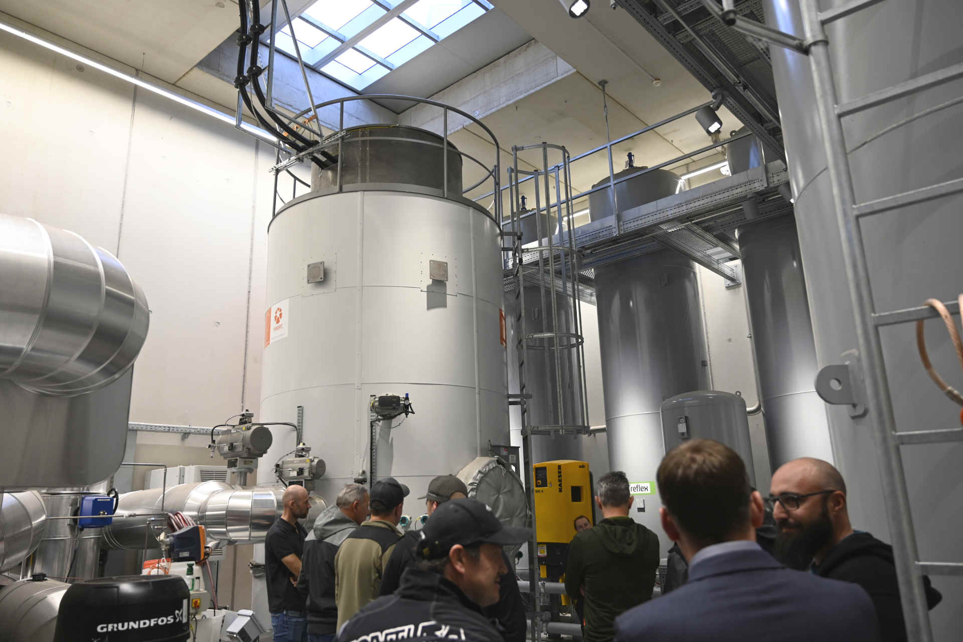 Höhepunkt des Rundgangs war die Besichtigung der innovativen Power2Heat-Anlage, auch bekannt als Haller „Klimaturm“. Geplant im Jahr 2022 und wenig später umgesetzt, ermöglicht sie es, erneuerbare Energie in Übergangszeiten zwischenzuspeichern und so die Versorgungssicherheit weiter zu erhöhen. Heute gilt die Anlage als Bindeglied zwischen Fernwärme und Strommarkt – ein echtes „Schmuckstück“, wie Sommeregger betonte, das Hall unabhängiger macht und zusätzliche Flexibilität schafft.