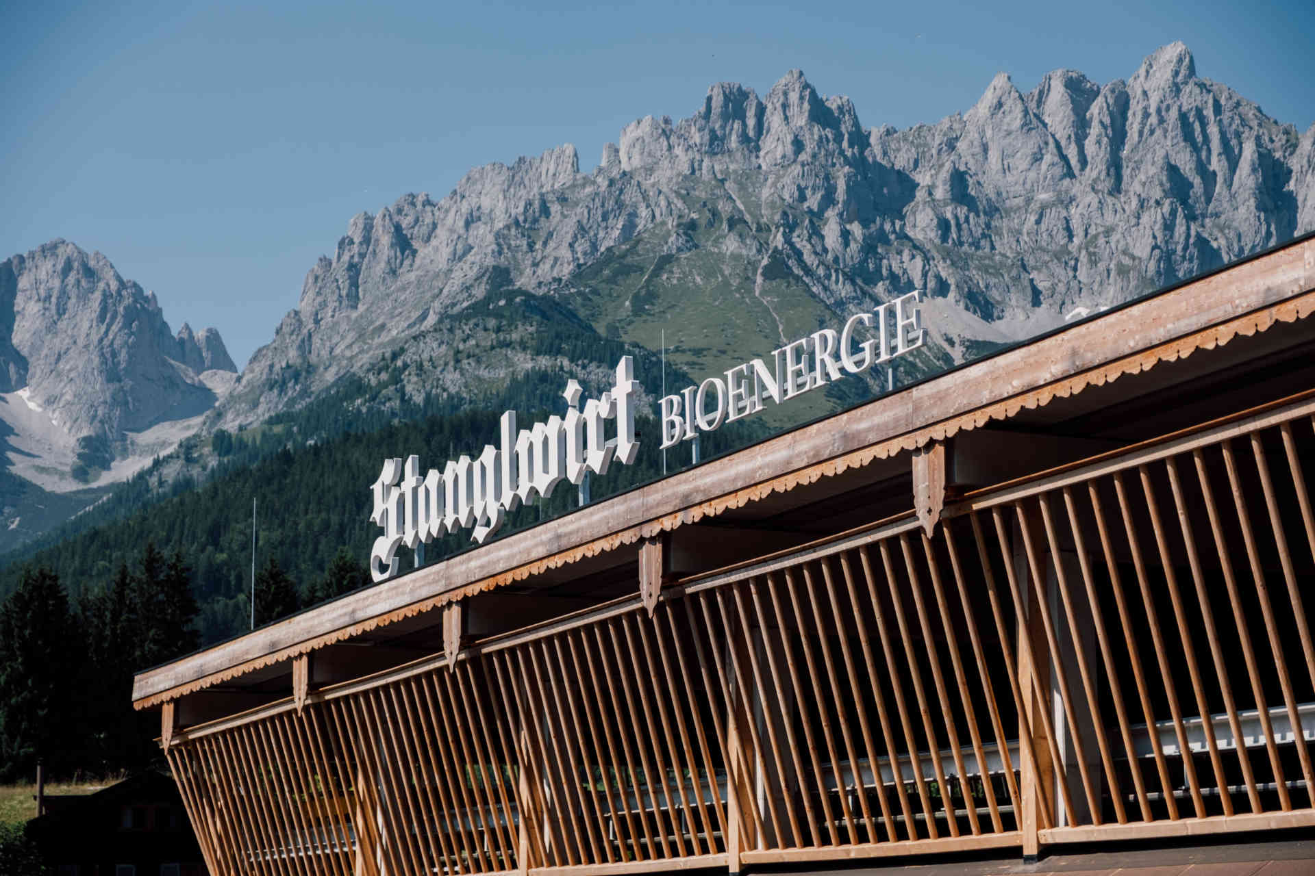 Nach einem intensiven ersten Teil stand eine Exkursion auf dem Programm, die zeigte, wie Innovation und Nachhaltigkeit Hand in Hand gehen können. Nur wenige Kilometer weiter, am Fuß des Wilden Kaisers, erwartete die Teilnehmenden – dazu waren nun auch Interessierte aus dem Kitzbühler Forstbereich, Stefan Schmelz von der Energieagentur Tirol und Vertreter des BioWärme-Tirol-Partners ETA Heiztechnik gestoßen – beim Stanglwirt in Going ein Novum in der Hotellerie: Das Bio- und Wellnesshotel der Familie Hauser hat als erstes Hotel weltweit ein Rückwärtskraftwerk von SYNCRAFT realisiert. Die Entscheidung fiel ganz bewusst auf ein Tiroler Unternehmen, wie Juniorchef Johannes Hauser, verantwortlich für Landwirtschaft und Stanglwirt Bioenergie, betont: „Alles, was den Stanglwirt ausmacht, entsteht direkt hier bei uns in der Region.“ Bei der feierlichen Eröffnung wenige Wochen zuvor waren auch prominente Gäste mit dabei – unter ihnen Joko Winterscheidt, der die Patenschaft übernahm, sowie Landeshauptmann Anton Mattle.